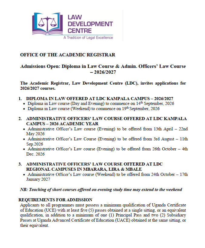 ADMISSIONS OPEN: DIPLOMA IN LAW COURSE & ADMIN. OFFICERS’ LAW COURSE – 2026/2027